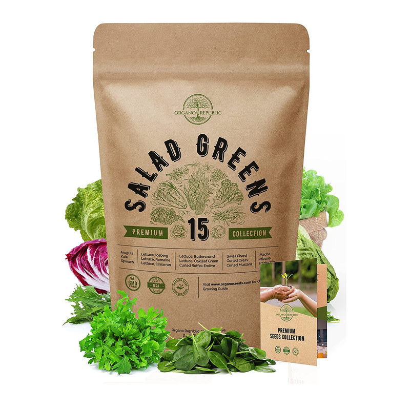 • - Huge Value -15 Lettuce & Salad Greens Non GMO Heirloom Seeds for Planting. LESS THAN $1.50 PER SEEDS VARIETY - Over 7500 seeds including: Arugula, Kale, Spinach, Buttercrunch Lettuce, Oakleaf Green Lettuce, Cimarron Lettuce, Iceberg Lettuce, Romaine Lettuce, Swiss Chard, Corn Salad - Mache, Mizuna - Lime Streaks, Curled Cress, Endive Curled Ruffec, Radicchio, Curled Mustard.