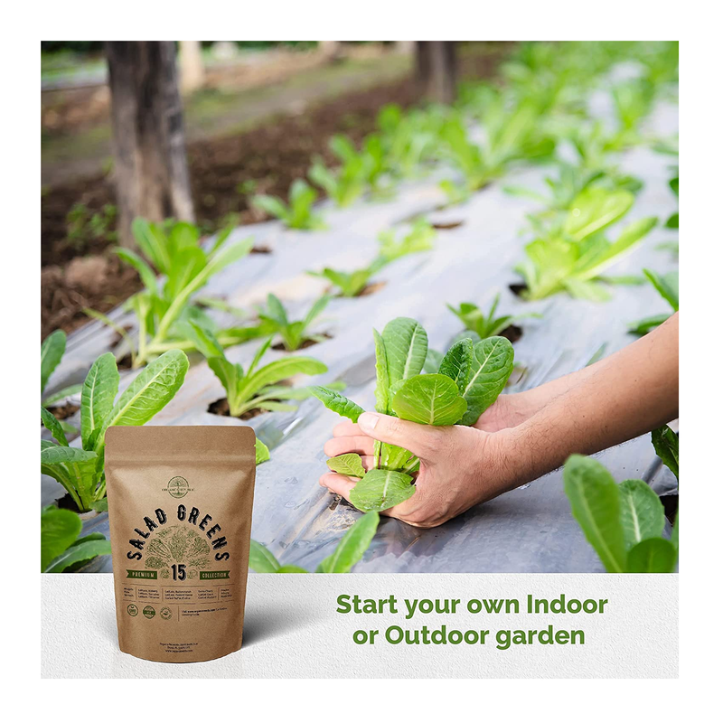 15 Lettuce & Salad Greens Seeds Variety Pack 7500+ Non-GMO Heirloom Lettuce Seeds for Planting Indoors & Outdoors Garden