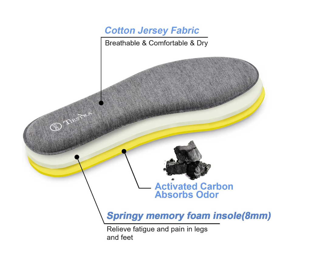 Rebound insoles with memory foam materia could provide cushioning energy to the feet to relieve muscle fatigue in feet and legs, help to improve foot conditions and problems