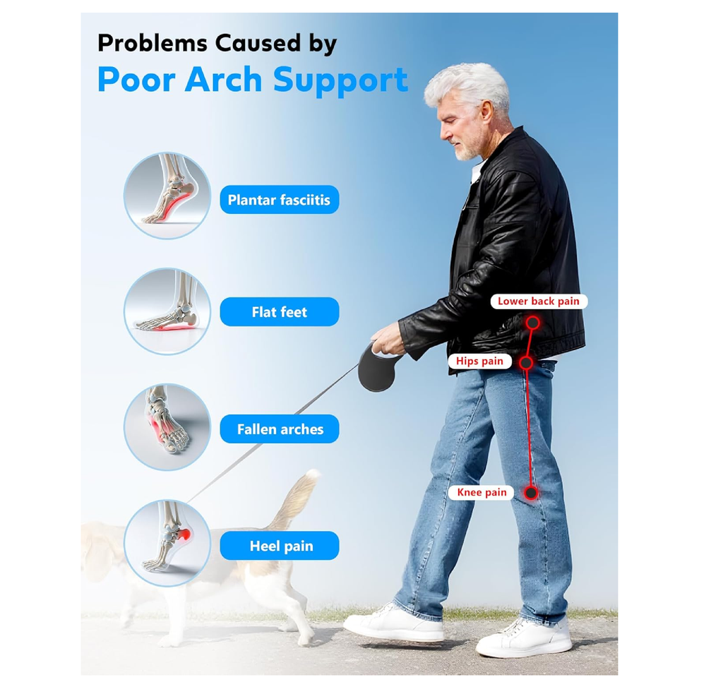 Foot Pain Relief: Fallen arches easily cause tired, aching feet, especially after prolonged standing or walking.