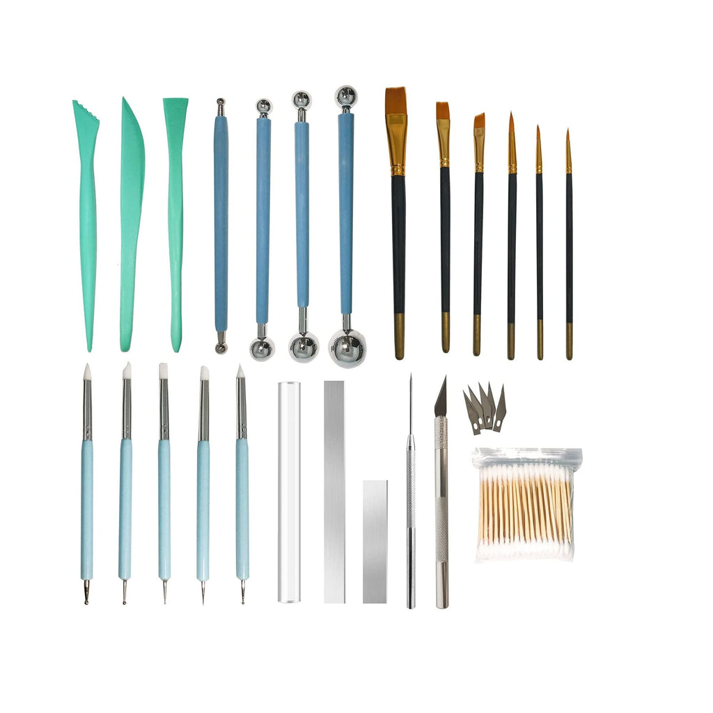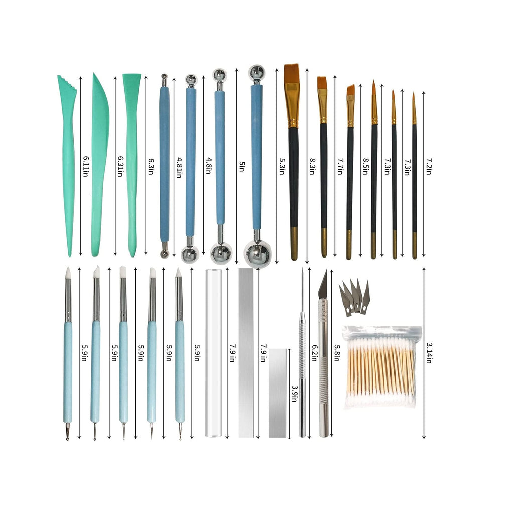 Our products are designed and manufactured in line with the standards of the industry. The entire range of products offered by us is very popular in the markets for their afford ability and high durability nature. -Product Details: 3-piece clay tool set, 5-piece silicone engraving tool set, acrylic stick, 7.87-inch long blade, 1.97-inch short blade, 1 detailed needle, 1 precision hand knife and 5 blades, 100 cotton swabs, 6 different shapes Brushes, 5 double-ended round pill sticks