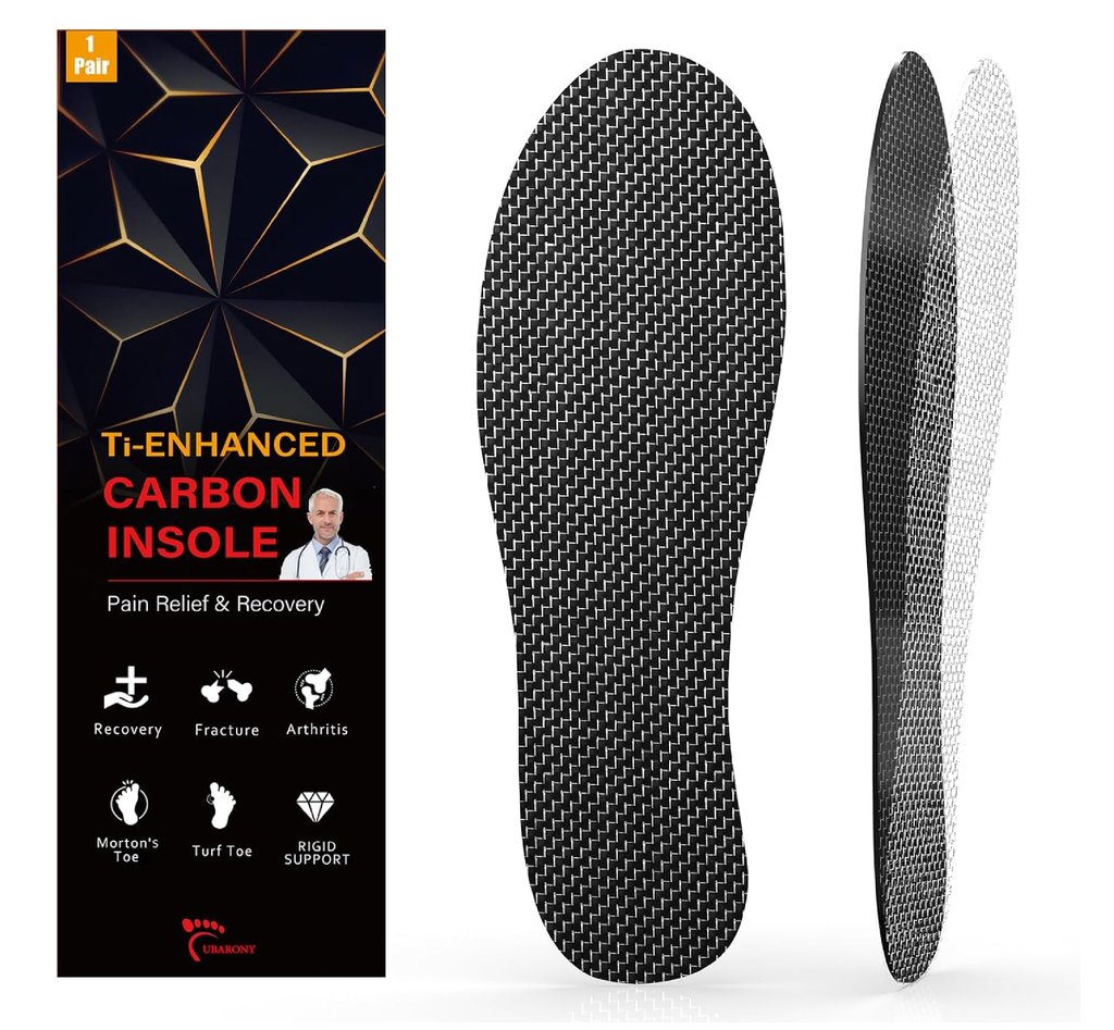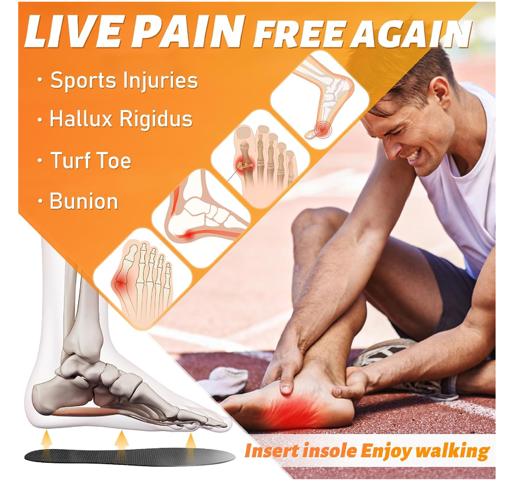 FOOT PAIN RELIEF: Carbon fiber shoe insert delivers injury protection and recovery. Help you experience 40% fewer foot and toe injuries and 20% fewer lower leg injuries. Carbon fiber insole for men and women also helps in quicker recovery of Turf Toe, Hallux Rigidus and Limitus, Foot Fractures, Arthritis, Broken Toe, Bunion, Morton's Toe, Big Toe Pain, Tendinitis, shin splints, Osteoarthritis, stress fractures, tibial stress syndrome, anterior tibialis tendinitis, and plantar fasciitis