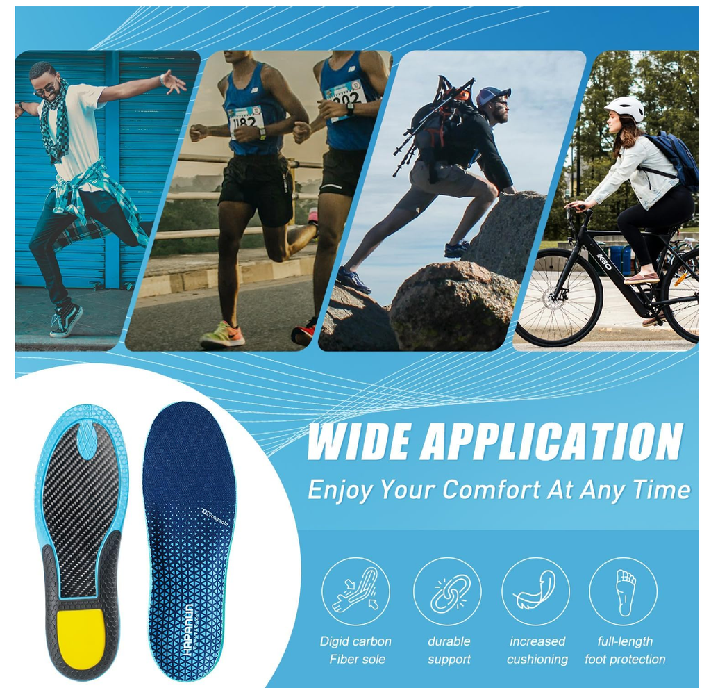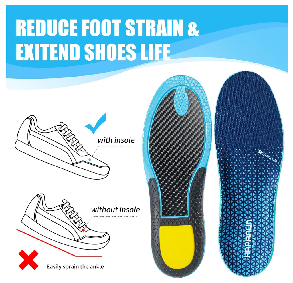 -Shock absorbing performance: HAPANUN carbon fiber sports insole is made of a variety of elastic shock absorbing materials, which can improve the speed of reaction during exercise and make it easier and more flexible to use.