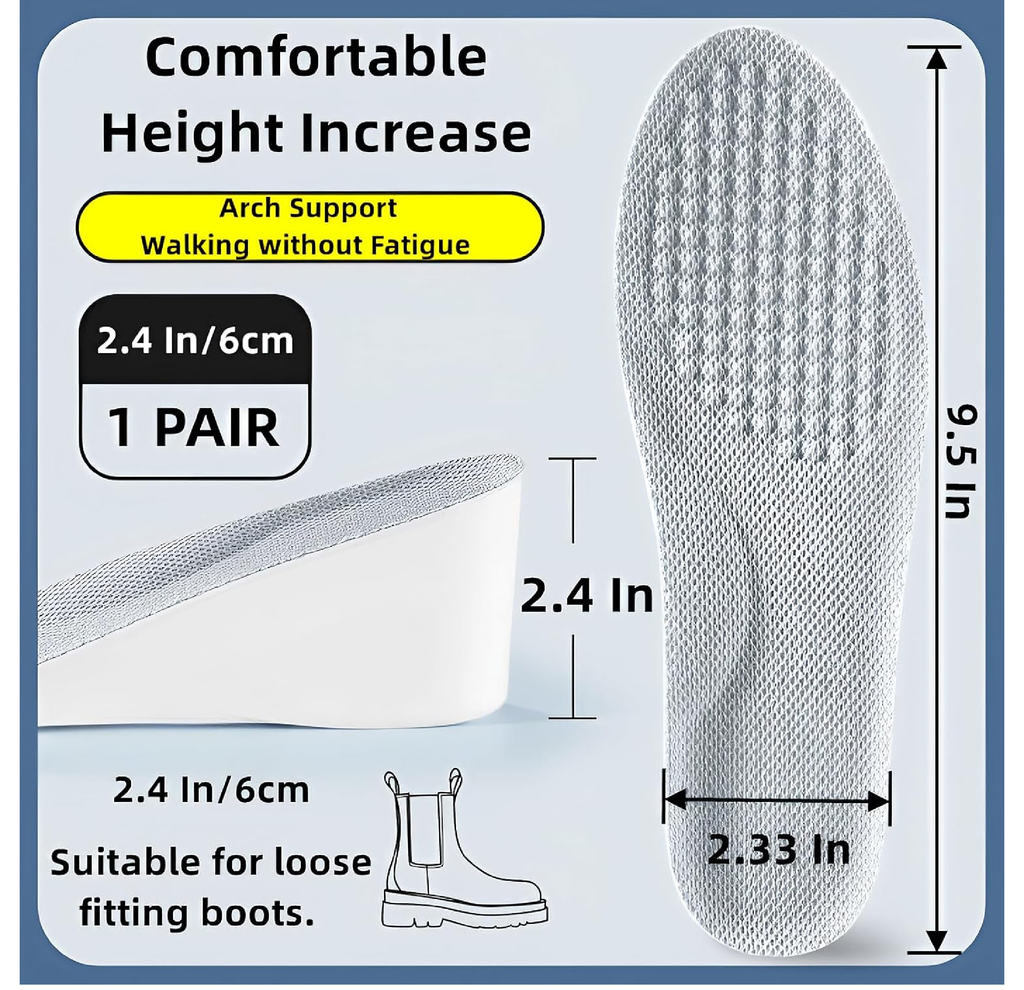 -Get A Height of 0.4-2.4 Inches:  The height increase insoles has multiple heights to choose from, you no longer have to worry about your height. Shoe lifts for women and men Can correct uneven legs and increasing the length of the leg.The best thing is that these height boosters are hidden inside the shoes, so no one knows the secret behind your height increase, which will greatly enhance your confidence!