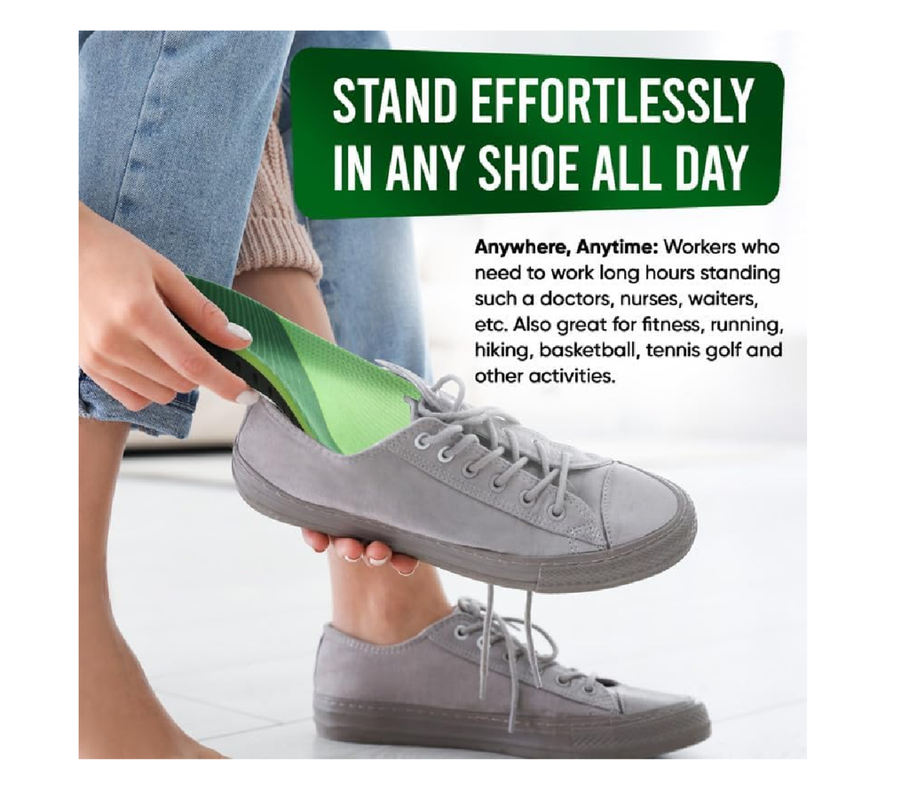 GREAT CHOICE FOR HARDWORKING FEET - For those who work on their feet all day, whether it's a teacher standing in front of a classroom, a nurse working long shifts, or a construction worker on a job site. Our insoles provide superior cushioning and support to alleviate pain caused by standing or walking for long periods