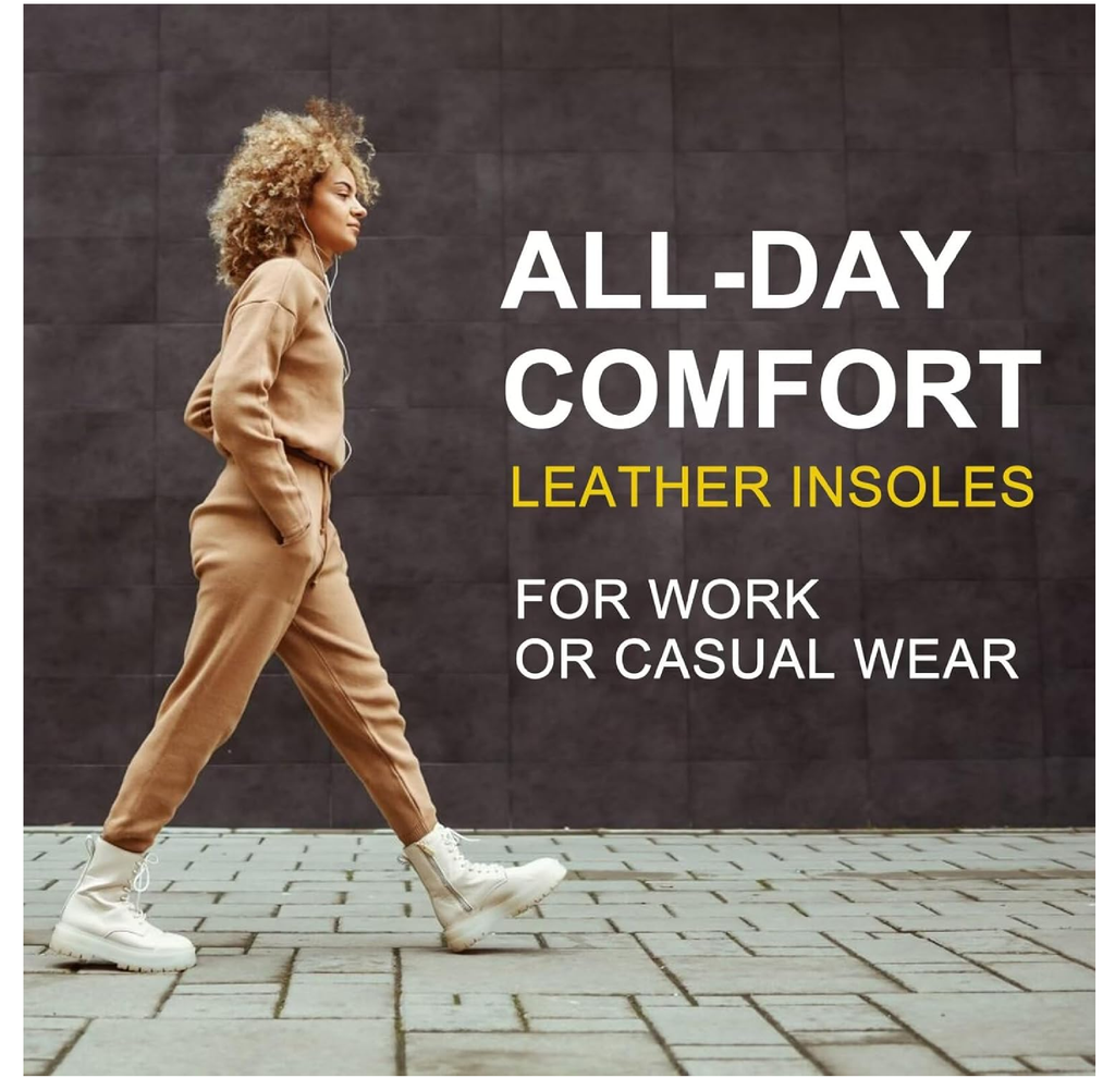 -WIDE APPLICATION: leather insoles can be providing a personalized and comfortable fit. Shoes inserts for women are suitable for all types of daily footwear, including sneakers, running shoes, boots, leather shoes, flats, etc. They are also ideal for individuals who need to stand for long periods while working.