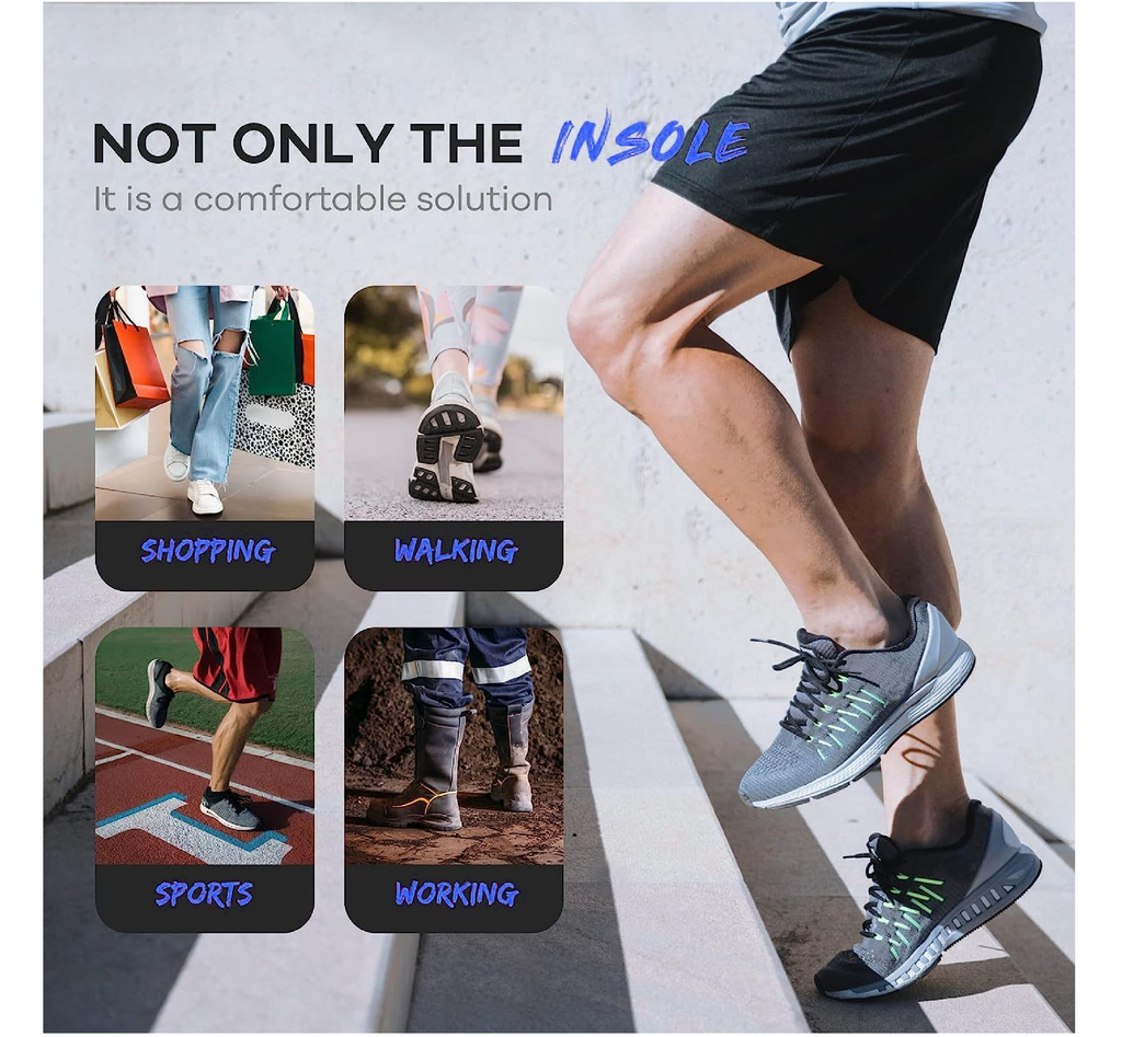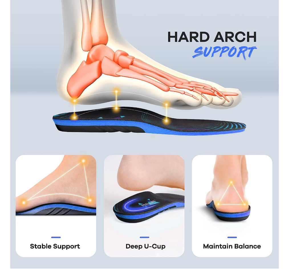 ARCH SUPPORT INSOLE: FEELLIFE can balance the force structure of foot, correct abnormal walking patterns for men and women.FEELLIFE arch support insoles relieve heel or metatarsal pain from Plantar Fasciitis. It conforms the curve of the foot bottom surface, fits the foot surface comfortably, and stands for a long time without fatigue.