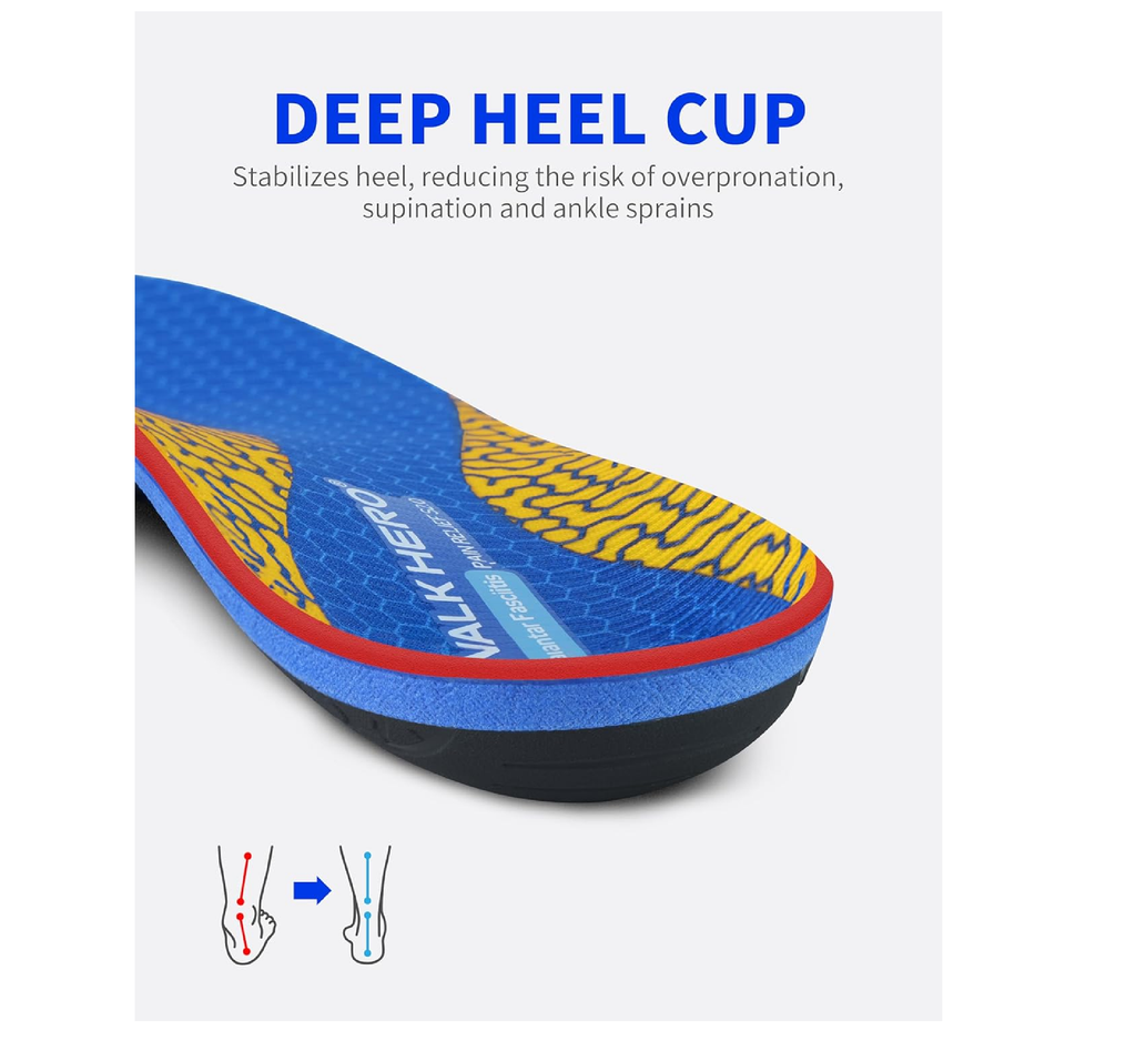 Deep Heel Cup: Our orthotic insoles for flat feet feature a deep heel cup that ensures proper foot positioning, improving stability and reducing the risk of overpronation, supination and ankle sprains