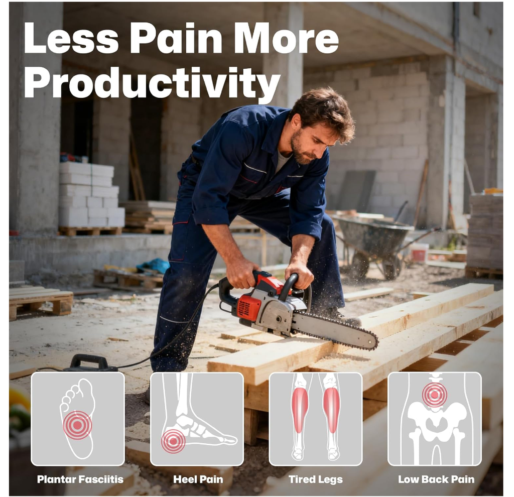 -Less Pain, More Productivity: WalkHero plantar fasciitis insoles alleviate knee, hip and back pain from standing all day and common foot pains associated with Plantar Fasciitis, Achilles Tendinitis, Bunions, Flat Feet, Metatarsalgia & Forefoot Pain and Supination. By addressing these pain points, our work insoles bring comfort and ease to every step, restoring productivity from the ground up.