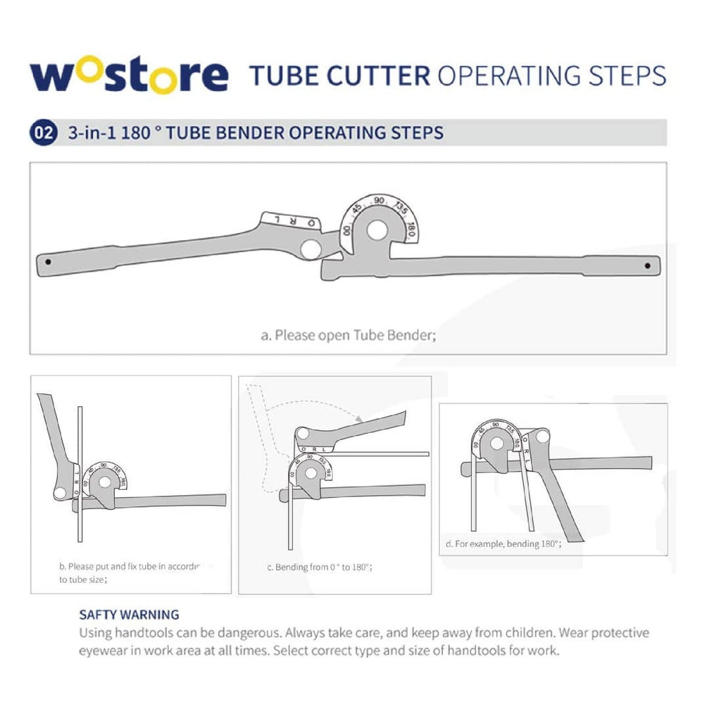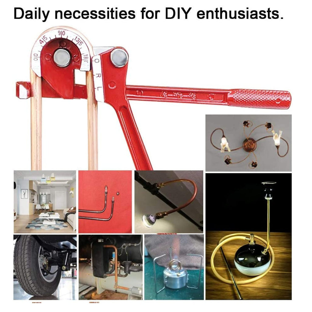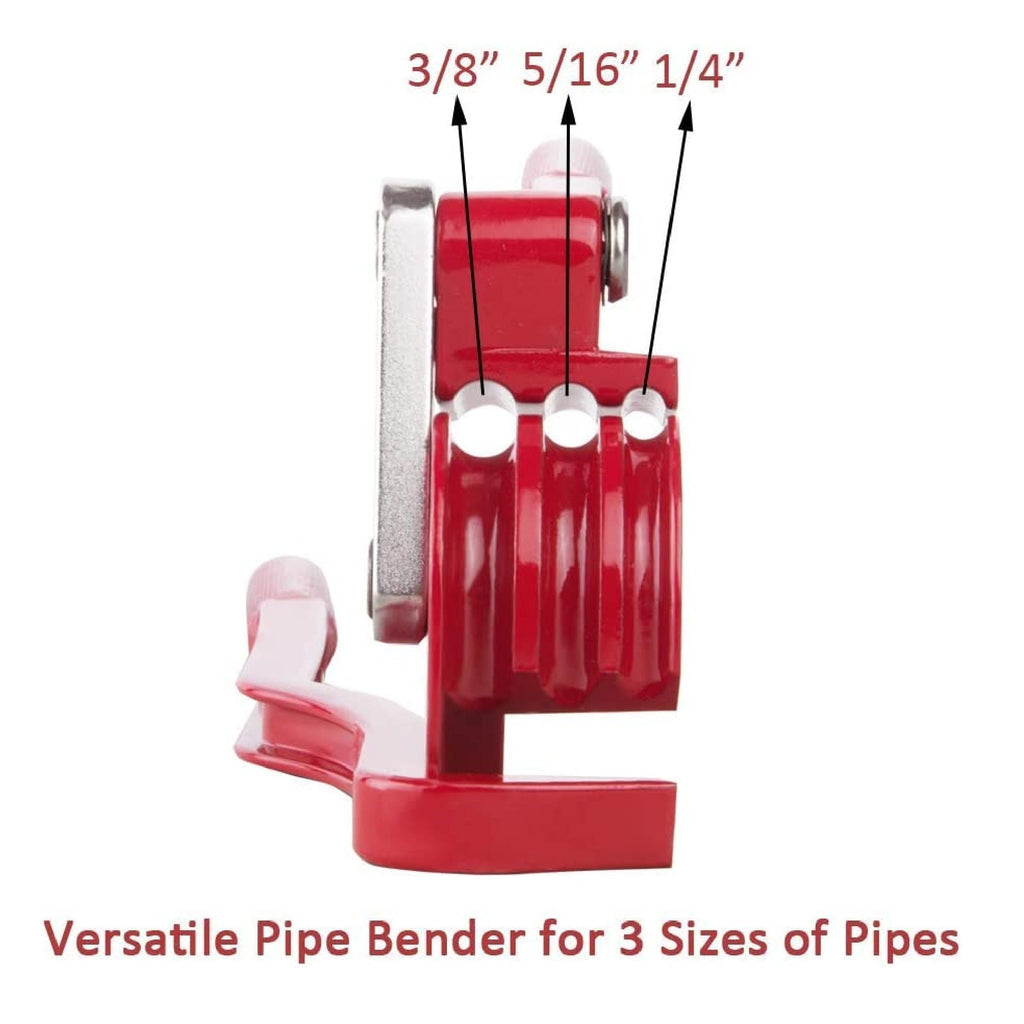 Package information.-Includes: pipe bender x 1; Handbook x 1-Package Dimensions: 10.83 x 3.15 x 3.15 inches.-Package Weight: 1.18 lbs.-Wide application. Made of high quality durable steel.-Tube bender designed to bend soft copper, aluminum and thin-walled steel tubes.-180 degree bending angle. The tube bender can easily bend the tube from 0 to 180 degrees.-Clear scale mark makes the bending angle more accurate.-Commonly used sizes. Suitable for 1/4, 5/16 and 3/8 inch (6, 8, 10mm) O.D. tubes- Ergonomic and knurled design. Ergonomic wide hook grips equipped with long, ridged non-slip grips allow you to provide an optimal and comfortable working experience.